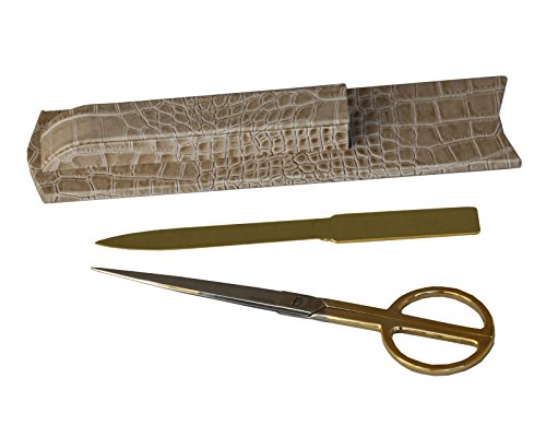 - LUXURY ADDITION TO THE OFFICE SETTINGS: This Protacini Breeze Beige Italian Crocodile Leather Library Set is professionally manufactured with beautiful Italian Crocodile Leather. Designed and crafted in Italy, the combination of luxe materials and passionate craftsmanship make this library set one of the finest desk accessories available today. Includes a gold-plated polished brass letter opener and scissors, PRESERVE YOUR WORK SURFACE: The bottom of each of our Library Set Holder is lined with a protective velveteen backing to ensure the surface of your desk stays scratch and scuff free., THE DACASSO STANDARD: We are proud to provide our customers with top-quality office accessories and desktop storage solutions which add elegance and functionality to their working environments. A one year, limited warranty for product defects is included in your purchase., CARE INSTRUCTIONS: To care for your item, use a watered down mild liquid dish soap. Dampen a cloth and wipe the item, then follow with a dry cloth to remove any moisture. A conditioning leather cleaner should be used 2-4 times a year for deeper cleaning, DIMENSIONS: This Library Set measures 11.25 X 2.75 X 1.125
