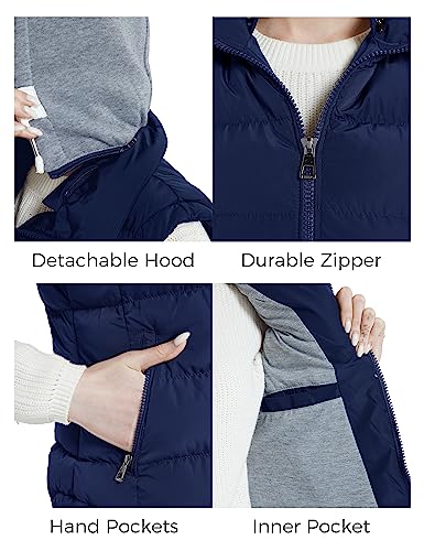 ZSHOW Women's Winter Padded Puffer Vest Removable Hooded Outwear Jacket (Navy, Medium)