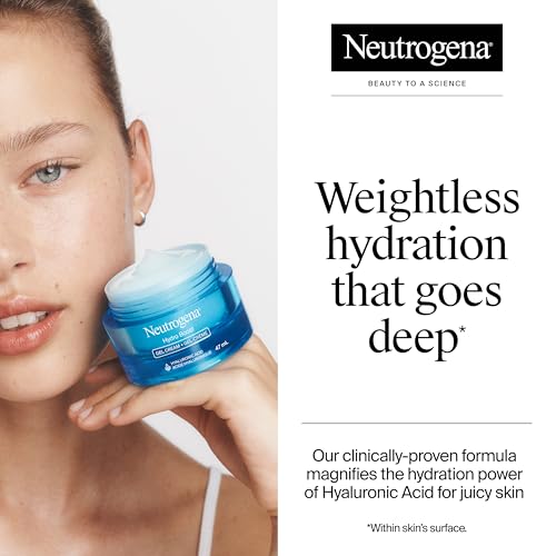 - QUICK HYDRATION - This lightweight moisturizer for face quickly quenches dry skin, absorbing fast like a gel while providing lasting moisture of a cream to relieve dry, thirsty skin, HYDRATING FORMULA - Enriched with hyaluronic acid, this face cream acts like a moisture-binding sponge, holding up to 1,000 times its weight in water for skin surface deep, lasting hydration, ALL-DAY COMFORT - The oil-free Neutrogena gel cream formula locks in moisture for 24 hours while feeling incredibly light and fresh on your skin, never heavy or greasy, GENTLE EFFECTIVENESS - Advanced skin care technology combines with a non-comedogenic, fragrance-free formula to deliver lasting hydration without clogging pores or causing breakouts, VERSATILE APPLICATION - This refreshing gel cream glides smoothly over skin and can be worn under makeup, making it ideal for both morning and evening use while keeping skin supple and moisturized, Instantly quenches dry skin and keeps it looking smooth, supple and hydrated all day, Oil-free, Non-comedogenic (won’t clog pores), Purified Hyaluronic acid, Wearable under makeup
