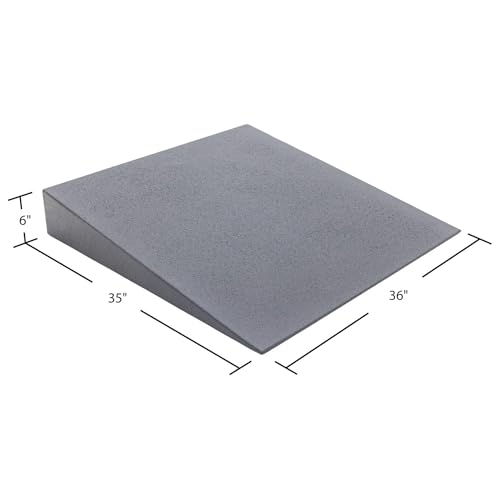 - Lightweight Threshold Ramp: Designed for wheelchairs, mobility scooters and walkers, this hard expanded foam ramp bridges gaps at doorways, steps, and curbs for safer movement indoors or out, Multiple Height Options: Available in 1 to 6-inch rise options to suit a wide range of entry points and raised surfaces, perfect for creating a smooth transition in and around your home, Supports Up to 800 Pounds: Features a patented design with a 100 percent solid, high-density foam core and a tough, waterproof coating built to withstand all weather conditions, Slip-Resistant for Safety: Rubberized surface ensures reliable traction in any weather and won’t scratch or damage interior floors; easy to clean with soap and water, No Assembly Required: One-piece design sets up in seconds; measures 36"L x 36"W x 6"H and weighs just 12 pounds for easy transport and storage