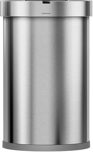 simplehuman 45 Liter / 12 Gallon Stainless Steel Semi-Round Sensor Can, Touchless Automatic Trash Can, Brushed Stainless Steel