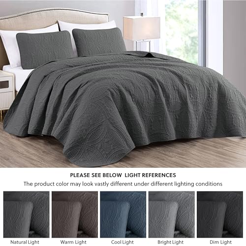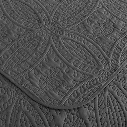 Chezmoi Collection Austin 3-Piece Oversized Bedspread Coverlet Set (King, Charcoal)