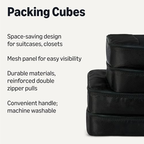 Amazon Essentials 4-Piece Packing Cubes Travel Accessories Set, Luggage Organizer with Double Zipper, Mesh Top, 100% Polyester, 2 Medium/2 Large, Black (Previously Amazon Basics)