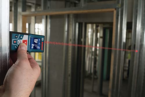 - ACCURACY: Features long-range measuring with extreme accuracy and measures distances up to 165-feet to within 1/8-inch., UPGRADES: Includes an upgraded color display with back lighting for increased visibility as well as Features Bluetooth functionality to conveniently transfer and store measurements from the laser measurer to a smart device via the Bosch app., ADVANCED: The Bosch GLM 50 C’s built-in inclinometer allows for advances features like angles, min/max, stake out and double indirect., LIVE MEASURING: Provides default real-time measurement that adjusts as you move closer and farther from target, just like a tape measure., COMPACT: Features small dimensions and a handy pocket-size design so the GLM 50 C can fit in any pocket.