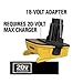 - Compatible with most DEWALT 18Volt tools and allows for use of 20Volt MAX compact batteries, Requires use of DEWALT 20Volt MAX charger, Use with DCB201, DCB203, DCB203BT compact batteries, Do not use with premium DEWALT batteries in DC970 or DC759 tools. This Adapter will not work with 20V/60V FLEXVOLT Batteries.