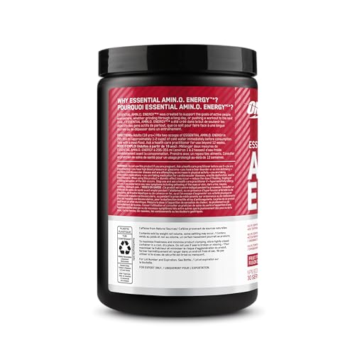 Optimum Nutrition Amino Energy Powder: Pre- workout & Anytime energy with Green tea, Green coffee extract + BCAA's - Fruit fusion: 30 servings [270g] (packaging may vary)