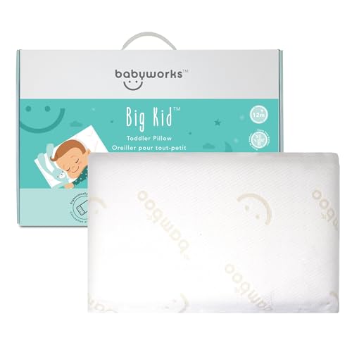 Baby Works Toddler Pillow - Soft, Supportive and Breathable Memory Foam with Hypoallergenic Bamboo Cover, Chiropractor Recommended, Washable and Removable Cover, Perfect for Cribs, Ages 12m+