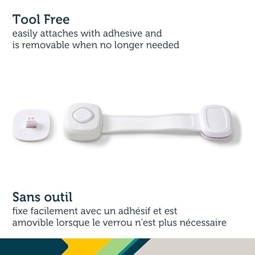 - [DECOY BUTTON] Prominent decoy button withstands the most determined problem-solving children with no effect, while its flexible surface cleverly conceals functional buttons in plain sight., [UNIVERSAL APPLICATION] Fits a wide range of appliances and secures cabinets with ease., [DURABLE FLEXIBLE STRAP] – Strong and effective strap offers a custom fit, ensuring long-lasting use and security., [CONVENIENT PIVOT DESIGN] – Strap pivots out of the way for easy access during non-use periods, enhancing convenience., [TOOL FREE] Easily attaches with adhesive and is removable when no longer needed. Your cabinets will thank you!