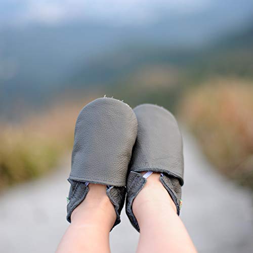 - This baby shoes light-weight and durable and fit narrow feet, wide feet, and everything in-between. They are a perfect first pair of shoes., Slip-on baby shoes look great with or without socks.soft sole slip-on crib shoes have an elasticized ankle designed to ensure the shoes stay on little feet., Shoes are made from ultra-soft, flexible leathers that bend in all directions for added comfort. These shoes are designed to protect little feet while crawling or walking. They allow feet to move, breathe and grow without being constricting. They are the perfect first shoes for infants, babies, pre-walkers and toddlers., Soft leather allowing the normal development of the foot/weight-bearing ability/balance ., NOTE :For SIZE, Please measure baby's feet length and refer to our Size Chart , the age is just for reference.