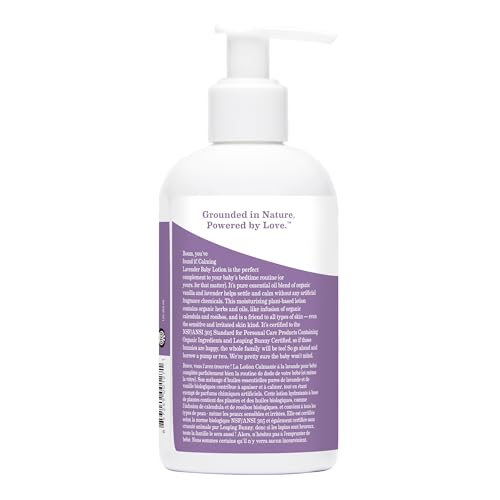 - Soothing Lavender & Vanilla Scent: Calming blend of organic lavender and vanilla helps create a peaceful bedtime routine for babies and toddlers., Nourishing Organic Ingredients: Made with organic calendula, rooibos, olive oil, and shea butter to deeply moisturize and protect delicate skin., Safe for Newborns: Dermatologist-tested and formulated without petroleum, mineral oil, artificial fragrance, or preservatives., Gentle for the Whole Family: Ideal for babies, kids, and adults — perfect for dry skin, after-bath care, or anytime hydration., Certified Clean & Ethical: NSF/ANSI 305 Certified, Leaping Bunny Certified, and Plastic Neutral — clean skincare you can trust.