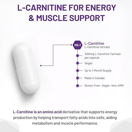 AOR - L-Carnitine 500mg, 120 Capsules 30-Day Supply - L-Carnitine Tartrate, Supports Energy Metabolism, Muscle Recovery & Athletic Performance, Promotes Fitness Goals - Vegan, Non-GMO, & Gluten-Free