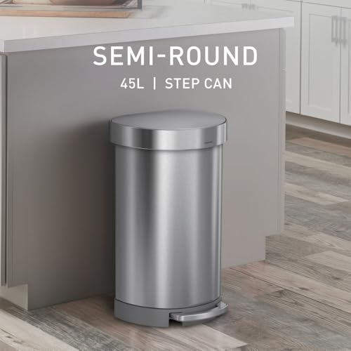 simplehuman 45 Liter / 10.5 Gallon Stainless Steel Semi-Round Step Trash Can with Liner Rim, Brushed Stainless Steel