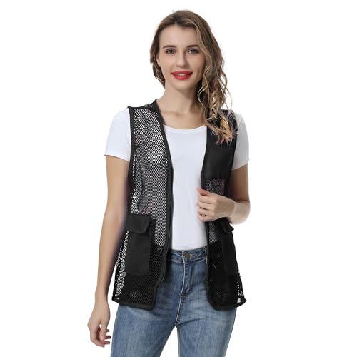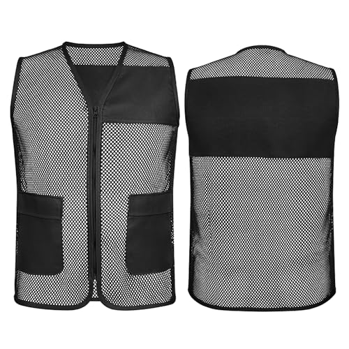 TOPTIE Adult Mesh Vest Zipper Supermarket Team Volunteer Uniform Vest - Black