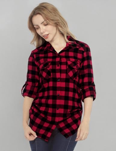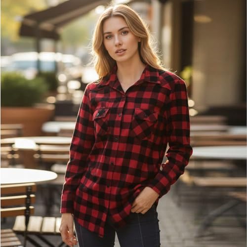 Match Women's Long Sleeve Plaid Flannel Shirt
