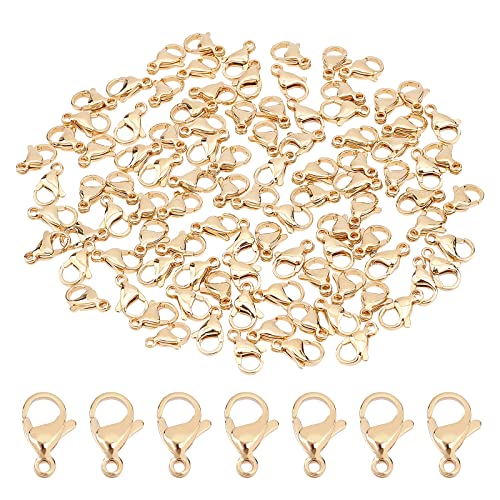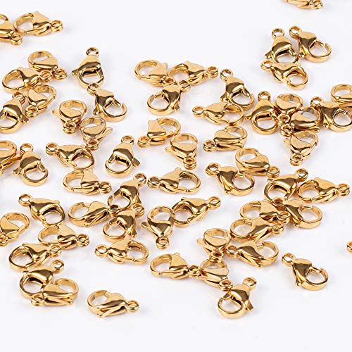 - Size: about 8mm wide, 13mm long, 4mm thick, hole: 1.5mm., Package Includes: 100 pieces lobster claw clasps totally; Classic and stylish, match other beads easily., Material: These lobster claw clasps are made of grade A 304 stainless steel, opens and closes easily and smoothly, which can serve you for a long time., Easy to Use: Pull trigger to open then release and the clasp automatically springs closed. Lobster claw clasps are used with a jump ring or chain link to make a complete clasp., Wide Usages: These lobster claw clasps are very practical DIY accessories, suitable for repairing your existing jewelry or using them to DIY bracelet, necklace, anklet, sweater chain and so on, show your imagination and create your own DIY jewelry.