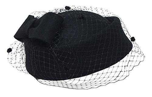 Sheliky Pillbox Hat Fascinator Beret Wedding Party Top Hat Church Wool Hat for Women (Black)