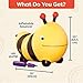 - Bumblebee Bouncer: Inflate, hop on, and bounce around the house with our soft and colorful bee hopper, Bizzi!, Air Pump Included: This hopping toy comes with a manual air pump that gets Bizzi up to maximum bounce in 5 to 10 minutes., Toddler-Sized: This bouncer is sized just right for toddlers on the move and the bumpy antennae are easy for tiny hands to hold., Active Play: Hopping and bouncing improves balance, develops motor skills, and keeps kids active., Age: This bouncy bee hopper is recommended for toddlers 18 months +