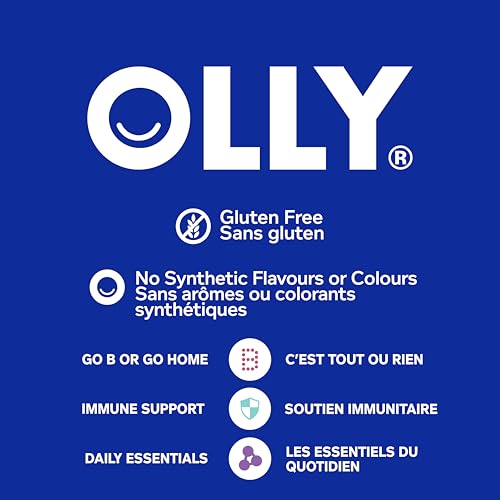 - OLLY Men's Multi: This OLLY Gummy Supplement Blackberry Blitz contains essential nutrients to help support men's health, The Goods Inside: These multivitamin gummies contain Zinc, Lycopene, and vitamins A, C, D, E, and B2, B6, and B12 to help keep you healthy, How to take: Thoroughly chew two Men's Multi gummy supplements daily. No food or water needed. If you are on antibiotic(s), take at least 2-3 hours before or after. Always read & follow the label., Naturally Tasty: Our chewable Men's Multi gummy supplements contain a refreshing Blackberry Blitz flavour made with no artificial flavours or colours, and are gluten-free, Mix & Match: Delightful and delicious OLLY gummies and vitamins can be taken together—mix and match as you please (following the label instructions), More OLLY Goodness: We create products that are just as effective as they are delicious— multivitamin gummies, premium softgels, and more ways to feel happy inside out