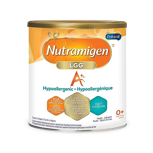 - Nutramigen A+ with LGG is a hypoallergenic, extensively hydrolyzed infant formula, providing special feeding for babies with cow's milk protein allergy including colicky* babies., Designed for babies with cow’s milk protein allergy, Still providing the nourishment your baby needs for normal growth and development, Has LGG culture, a bacteria that's been extensively studied for dietary allergy management, Contains DHA, a type of Omega-3 fat and an important building block of the brain, * Due to cow’s milk protein allergy The Nielsen Company, December 2015 LGG is a registered trademark of Chr. Hansen A/S