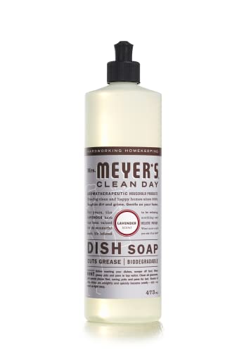 - Cuts through grease while keeping dishes clean and bright, Contains plant-derived cleaning ingredients to make grease disappear, Biodegradable dish soap designed for hand washing dishes, pots, and pans, Garden-fresh lavender scented dish soap with an original and clean floral fragrance, Mrs. Meyer's produces cruelty free dish soaps. None of our products are tested on animals.