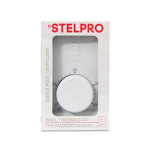 Stelpro Line Voltage Celcius Thermostat, Mechanical 240 Volts - Single-Pole, Compatible with Most Heating Products (Electric Baseboards, Wall and Fan-Forced Heaters), White