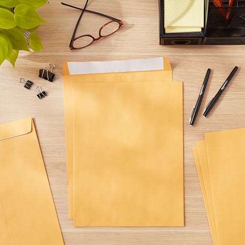 AmazonBasics Catalog Mailing Envelopes, Peel & Seal, 10x13 Inch, Brown Kraft, 100-Pack