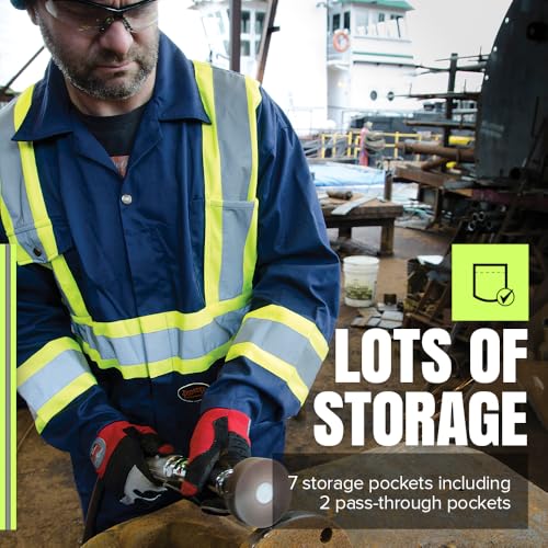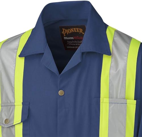 - HI VIS COVERALLS - Pioneer Hi Vis Poly/Cotton Safety Coveralls in Navy Blue are built for comfort, productivity and durability and designed with a relaxed fit, DURABLE & COMFORTABLE- Made of poly/cotton for high performance and maximum comfort. Comfort flex waistband and action-back for easy movement, plus adjustable snap wrists, SAFE - Meets CSA Z96-22 Class 1 Level 2 and ANSI 107-20 Class 1 Type O standards with premium StarTech reflective tape. UPF 50+ UV protection blocks over 98% of damaging UV rays, FUNCTIONAL - Coveralls have 7 storage pockets (including 2 pass-through pockets), SIZING – Please measure your chest and waist and compare it to the size chart. If your stomach/waist is larger than your chest, choose the larger size. If wearing for work, consider sizing up to allow for freedom of movement.