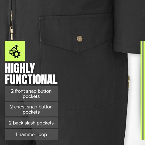 Pioneer Heavy Duty Insulated Work Safety Coverall for Winter - Quilted Insulated Cotton - 6 Pockets - Black