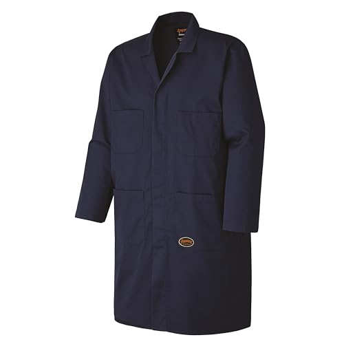- SHOP & GARAGE WORK COAT - Pioneer Navy Blue Shop Coat is designed for comfort and long-term durability for mechanics and automotive shop workers, DURABLE - Made of 7.5 Ounce (255 GSM) Poly/Cotton. It is anti-static, permanent-pressed, wrinkle-free. Treated to prevent shrinkage of less than 1%, FUNCTIONAL - Action back for easy mobility and movement. Snap front covered by placket and pleat opening at bottom back hem for added utility, ROOMY POCKETS - 4 deep and roomy pockets, bartacked for extra strength., SIZES - Available in Small to 5XL, see size chart for details