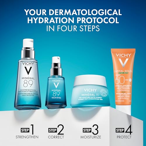 Vichy Hydrating Hyaluronic Acid Serum, Mineral 89 Serum and Daily Skin Booster with Natural Origin Hyaluronic Acid, Hydrates and Strengthens Sensitive Skin, 50mL