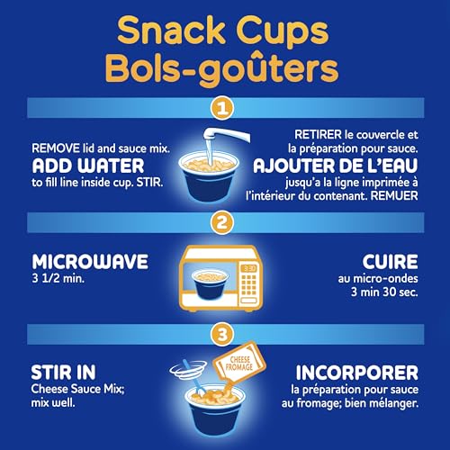 - Twelve 58g Kraft Dinner Three Cheese Macaroni & Cheese Snack Cup, Iconic cheesy flavour and signature macaroni shape, Easy, quick meal perfect for on-the-go, Microwavable and ready in 4 minutes, KD is Canada’s #1 mac & cheese }