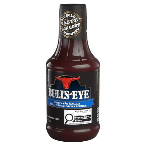 - One 425mL bottle of Bull's-Eye Chicken & Rib Renegade BBQ Sauce, Bull's-Eye Chicken & Rib Renegade BBQ Sauce brings a big bold taste to your barbecue with a smoldering combination of flavourful ingredients, Perfect for summer grilling, barbecues and parties at home or at your cottage, Marinate meat with Bull's-Eye before cooking, Great as a dipping sauce or tabletop condiment, Refrigerate after opening, Kosher