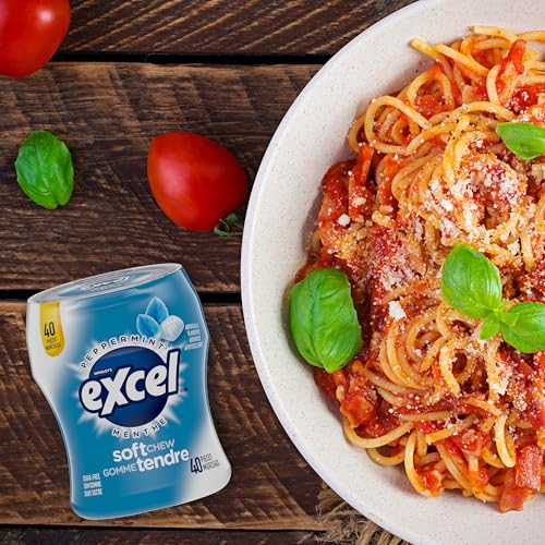 - 40 pieces of EXCEL Soft Chew Peppermint Sugar Free Chewing Gum, EXCEL Soft Chew Peppermint Chewing Gum offers a burst of Peppermint without any added sugar, Experience a crisp flavour and soft chewy texture, This Peppermint gum provides a refreshing and cool experience that leaves your breath minty fresh, Conveniently packaged, Excel gum is perfect for storing in the car so you can freshen up no matter where you’re heading, This Peppermint gum is perfect for your desk so you can refresh while you work, Elevate your gum-chewing experience with EXCEL, Canada’s number one gum brand