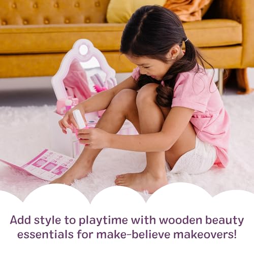 Melissa & Doug Wooden Beauty Salon Play Set, 18-Piece Vanity with Pretend Play Toys, Makeup, Mirror, Accessories & More, Preschool Toys for Girls & Boys Ages 3+ - FSC Certified