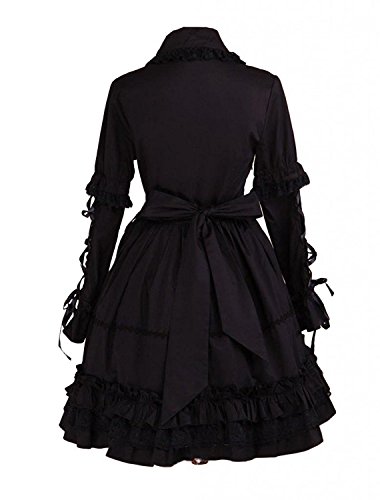 Ainclu Womens Gothic Long Sleeves Gothic Lolita Dress Cotton Black