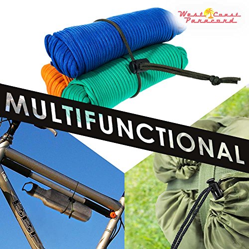 - Made from a strong, durable plastic, Strong design built for the toughest environments including dirt, mud, salt water, indoor/outdoor use and temperatures from -50 degrees F to 150 degrees F. West Coast Paracord's Cord Locks are much stronger than the cheap Chinese ones sold in department stores. The cord lock spring is made from stainless steel and will not lose its memory. It has a holding strength of 2 to 3 pounds, +/- 15 percent., This package contains the toughest cord locks available! Each toggle stopper measures ~ 15mm x 10mm x 25mm / 0.6 in x 0.4 in x 1 in. Cord locks have double cord stops (single opening that accommodates two pieces of cord) that can hold a ¼ inch cord or two pieces of 4 mm/ 0.157-inch cord. Choose from 6 Packs, 10 Packs, 25 Packs, or 50 Packs. We have enough for business customers too (check business pricing)!, The most versatile tool you didn’t know you needed! These cord locks fit a variety of cords and fabric materials. Commonly used in bug out bags due to their light weight as an emergency tool, camping, backpacking – these cord locks are on just about every backpack - drawstrings for clothing, pants and jackets, shoe strings and laces and are also seen in arts and crafts projects. With 6 different colors to choose from, you will be able to find one that’s a perfect match for your use., West Coast Paracord has more kinds of cord lock than you can imagine! This listing is for an oval shape cord lock. We carry many other shapes and sizes including but not limited to: heart shape, round bubble ball, bean shape, cylinder and more! They come in various sizes and colors for your cord securing needs.