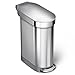 simplehuman 45 Liter / 12 Gallon Slim Hands-Free Kitchen Step Trash Can, Brushed Stainless Steel