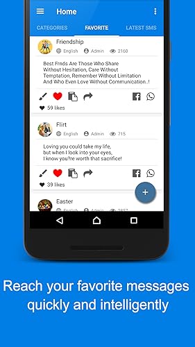 - ✔ See latest added sms, set them as favorite, share and you can do much more than that., ✔ Search messages with an easy way., ✔ Add your own message and you can upload it to our sms server so others can see them., ✔ see most viewed messages and number of likes for each messages., ✔ Decorate styled messages