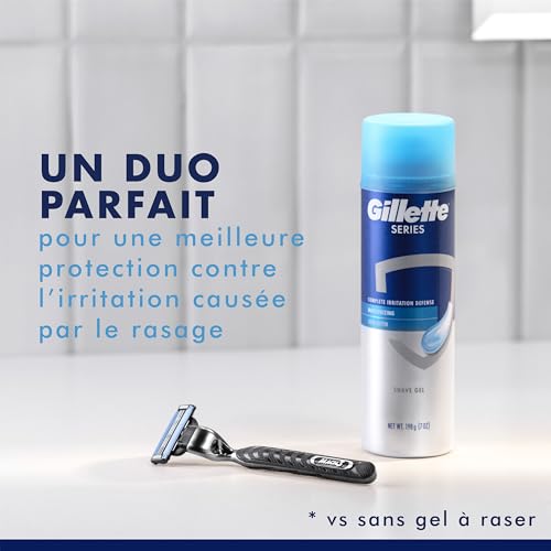 - CLASSIC CLOSE SHAVE: 3-bladed men’s razor that gives you a close shave without the fuss. Features open-blade architecture for easy rinsing, UPGRADED LUBRASTRIP* for enhanced glide: An improved lubrication strip for extra glide (*vs previous Mach3), 1 BLADE = 15 SHAVES. Get up to 15 shaves from each Mach3 razor refill, STRONGER-THAN-STEEL razor blades that stay sharper longer (vs. Sensor3), Pairs perfectly with Gillette’s Series Shaving Gel for added protection from shaving irritation
