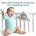 - Features 6 different musical categories with 18 different tunes and music shuffle button, Up to 40 minutes of continuous non-repeating music, Special soothing motion engages baby and colorful buttons allow baby to activate and change the music on their own, 2 high quality speakers, adjustable volume, Nightlight and becomes a stand-alone portable music box for toddlers
