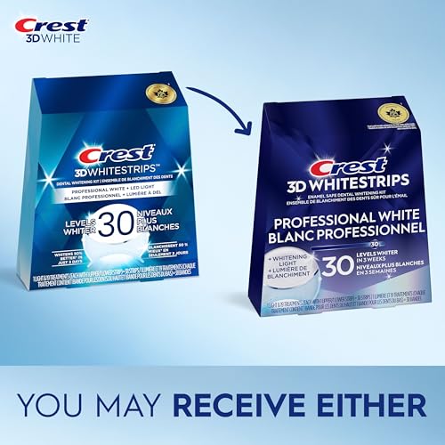 Crest 3D Whitestrips Professional White + Whitening Light At-Home Teeth Whitening Kit, 19 Treatments + Light, 30 Levels Whiter