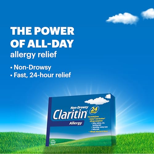 - 1 tablet is clinically proven to provide effective, 24-hour relief from indoor and outdoor allergy symptoms without causing drowsiness, so you can stay alert and focused all day, Provides fast relief of allergy symptoms caused by outdoor allergens such as trees, grass, ragweed and pollen and indoor allergens such as dust mites, animal dander and moulds, Relief of your worst allergy symptoms including itchy, watery, red, burning eyes, sneezing, runny nose, itchy nose, skin itch and hives, Doctors recommend taking one Claritin every day during your allergy season for continuous symptom relief, Each tablet contains 10 mg of loratadine