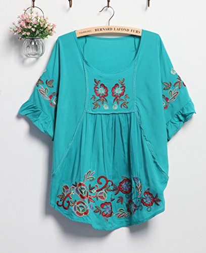 Xinqiao Girl Maternity Dress Tops Embroidered Peasant Mexican Blouse Shirt (Green)