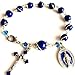 elegantmedical CATHOLIC Silver Wire Wraped Lapis lazul BEAD BRACELET ROSARY CROSS, 7.8 Inch, Sterling Silver Bead