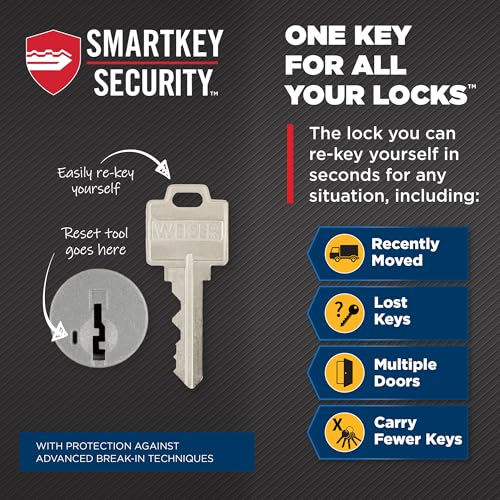 - [DEADBOLT AND DOOR KNOB COMBO PACK] Fairfax Door Knob with Key that comes with Elements Single Cylinder Deadbolt Lock. For use on exterior doors where keyed entry and security is needed., [EASY INSTALLATION] Easily installs in minutes with just a screwdriver., [UNIVERSAL HANDING] Fits both right handed and left handed doors, [ADJUSTABLE LATCH] Features an adjustable latch to fit all standard door preparations., [DOOR SPECIFICATIONS] Fits door thickness 1-3/8"-1-3/4"; Latch Backset 2-3/8" - 2-3/4"; Cross Bore 2-1/8", [SMARTKEY TECHNOLOGY] Protects against advanced break-in techniques while giving you the ability to re-key the lock yourself in seconds - leaving lost or unreturned keys obsolete., [CERTIFICATIONS] Deadbolt - ANSI/BHMA Grade 3 Certified ; Door Knob - ANSI/BHMA Grade 2 Certified, [LIFETIME MECHANICAL AND FINISH WARRANTY], [WHAT'S IN THE BOX] 1 Set of Door Knobs (Interior and Exterior) Deadbolt, Latches, Strike, Screws, SmartKey Tool, Keys, Manual