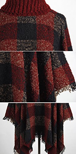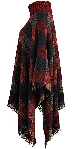 QZUnique Women's Turtleneck Poncho Sweater Knit Cape Pullover Shawl Wrap Dress Ponchos Tassels, A-red, One Size