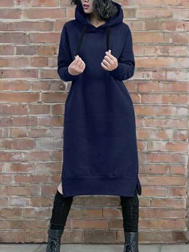 NUTEXROL Women's Long Fleece Sweatshirt Hoodie Pullover DressPlus Size (S, Navy)