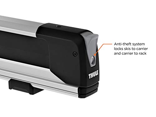 - Extendable for easy loading and unloading, without having to stretch over the car roof, Holds skis and snowboards securely with Ultra-Soft rubber arms that grip without scratching the surfaces, Added roof clearance for skis with tall bindings thanks to raised design, Lock the skis to the rack, and the rack to the car, with the Thule one-key system (locks included), Fits Thule rack systems, round bars and most factory racks with both t-track and speed link around the bar mounting options