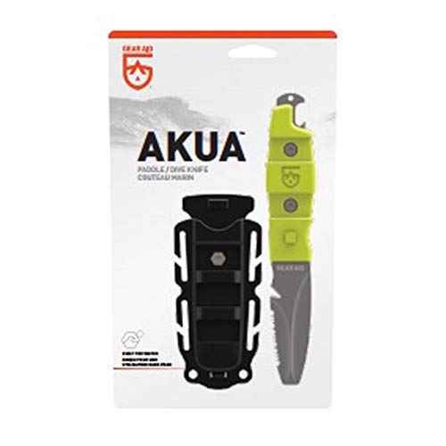 GEAR AID Akua Blunt Tip Paddle Knife with Serrated Blade and Sheath, Green, 3” Blade