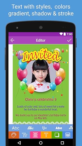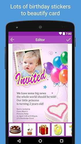 - This Free app has various Premium features like:, 1. Choose from various HD quality Birthday greeting cards and birthday photo frames, 2. Write "Name on Birthday Cake" and choose your favorite fonts and color, 3. Share your favorite birthday quotes or birthday messages, 4. Add birth dates of your friends and family and get birthday remainders., 5. Choose photos from your mobile gallery., 6. Photos can be adjusted to frames by Rotate, zoom in, zoom out and move with your fingers, 7. Wish them with your own text, you can change font style, color, size, gradient, shadow, stroke., 8. You can Save and Share greetings with your mobile's social networking apps, 9. It’s easy to use and no internet connection needed., 10. Write Name on Birthday Cake and have photo on birthday cakes, 11. Celebrate your friends and family birthdays with the Best Birthday Photo Editor., 12. Download Now for Free!